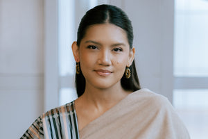 "Ketika mengenakan sesuatu, bagiku adalah sebuah ekspresi dari personality yang ingin kita tunjukkan–What we want to present to the world," ujarnya yang terlihat cantik mengenakan Partonun Kreasi Meat Pink Sand.