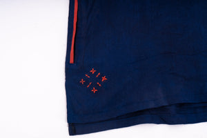 Fitted tapered long pants with ankle length, suitably used for daily activities outside and inside the home. A casual style with embroidered accents on the backside pocket combined with handmade woven and naturally dyed.