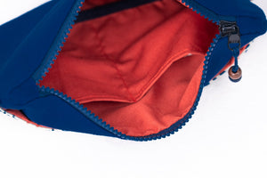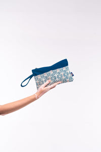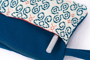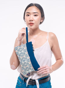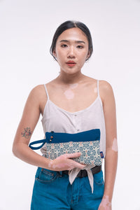 Elegant pouch for outdoor activities, with beads accent on the zipper combined with handmade woven and naturally dyed.