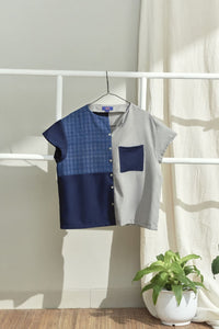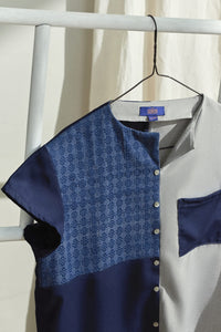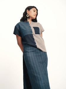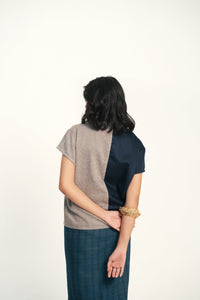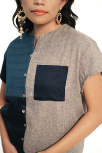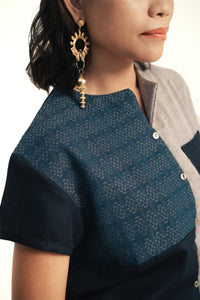 Womens blouse for everyday use with a loose fit. The color blocking gives off a contemporary yet casual style. Made out of handmade tenun with natural dye.