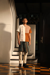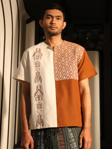Large embroidery of roses is directly inspired by the tradition of medieval glasswork, especially stained glass panels. Meanwhile, ruffle, patch, and piping details are a callback to English wallpaper designs in the 19th century. Combining two traditions with our beloved ‘Habut’ motif in two new colours, ‘Jemari’ highlights the beauty in the carefulness of creating and crafting.