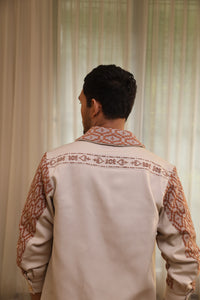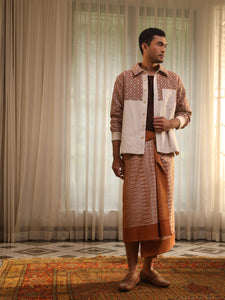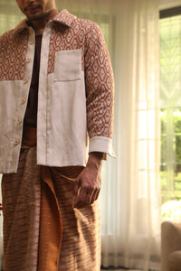 Large embroidery of roses is directly inspired by the tradition of medieval glasswork, especially stained glass panels. Meanwhile, ruffle, patch, and piping details are a callback to English wallpaper designs in the 19th century. Combining two traditions with our beloved ‘Habut’ motif in two new colours, ‘Jemari’ highlights the beauty in the carefulness of creating and crafting.