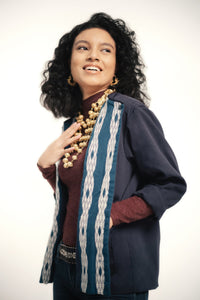 Unisex long sleeved shirt with a loose fitting fit for outings and semi-formal style. Made with handmade tenun and natural dye.