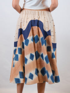 ‘Tepi Laut’, sebuah koleksi yang mengangkat kreasi dengan menerapkan teknik pewarnaan alam Shibori. Terinspirasi dari keindahan dan pemandangan matahari terbenam di pesisir pantai dimana langit dihiasi warna jingga dan biru, koleksi ini memadankan linen dengan warna beige, navy dan dark green.