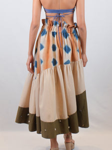 ‘Tepi Laut’, sebuah koleksi yang mengangkat kreasi dengan menerapkan teknik pewarnaan alam Shibori. Terinspirasi dari keindahan dan pemandangan matahari terbenam di pesisir pantai dimana langit dihiasi warna jingga dan biru, koleksi ini memadankan linen dengan warna beige, navy dan dark green.