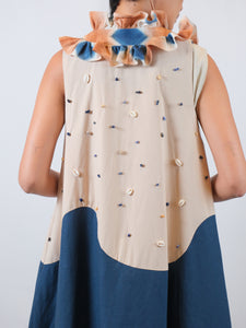 ‘Tepi Laut’, sebuah koleksi yang mengangkat kreasi dengan menerapkan teknik pewarnaan alam Shibori. Terinspirasi dari keindahan dan pemandangan matahari terbenam di pesisir pantai dimana langit dihiasi warna jingga dan biru, koleksi ini memadankan linen dengan warna beige, navy dan dark green.