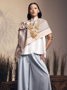 Koleksi bertajuk ‘Kanya’, sebuah koleksi yang mengangkat kreasi dan kreativitas penenun dengan memberi ruang dan kesempatan memperlihatkan keunikan dan karakter mereka ke dalam karyanya.